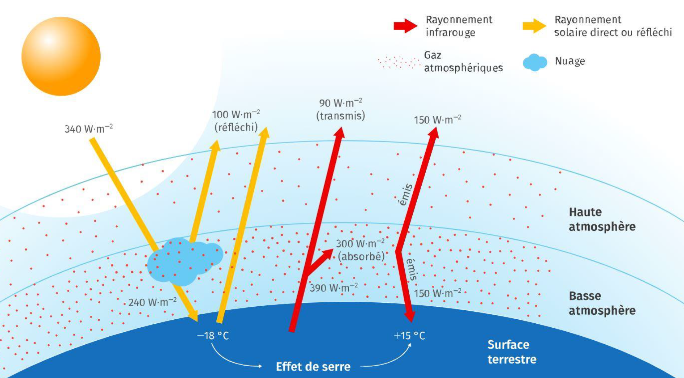 Ex. : l'atmosphère terrestre se comporte comme un thermostat si une bûche de bois brûle pendant quelques heures