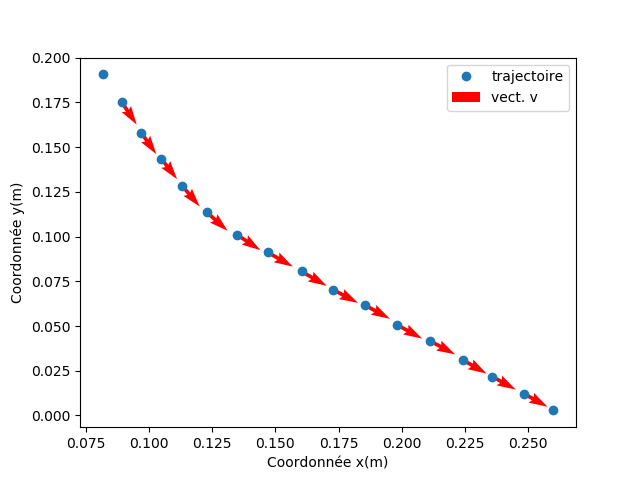 Représentation de la trajectoire et du vecteur-vitesse d'un objet qui chute