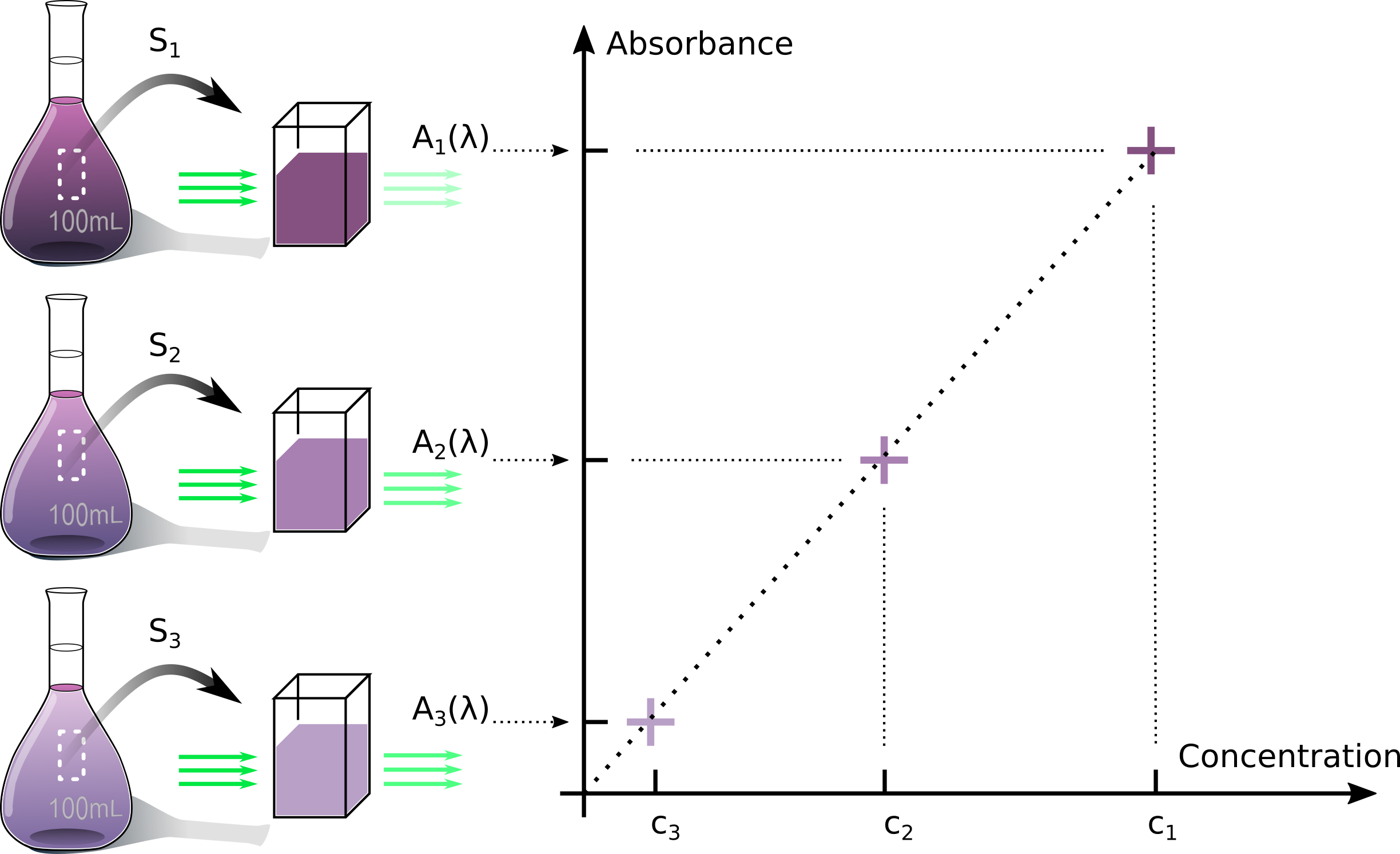 Par la suite, une même grandeur physique est mesurée dans chacune de ces solutions. Il